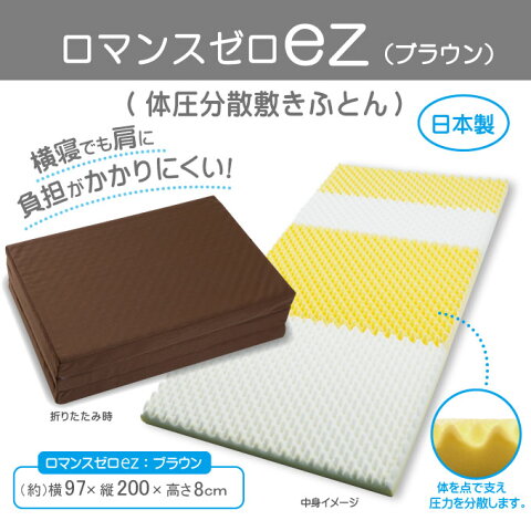 体圧分散敷きふとん ロマンスゼロez ブラウン■商品詳細ROMANCE ZERO ezロマンスゼロ イージー シングル ブラウン横寝でも肩に負担がかかりにくい体圧分散敷き布団です。